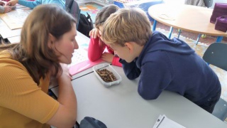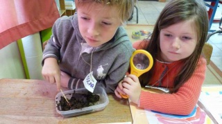 Dans le cadre de notre projet sciences sur le recyclage, les élèves de GS/CP, CP/CE1 et CE1 ont eu une animation sur le compost. Tout d’abord les élèves ont trié des déchets dans différentes poubelles. Nous avons ensuite parlé de l’utilité du composteur. Composter permet de réduire les déchets organiques en les transformant en une sorte d’engrais utile aux plantes : le compost. Les élèves ont pu observer les décomposeurs, des petits animaux comme le ver de fumier, le scolopendre, le cloporte ou la collembolle à l’aide de loupes et de bâtonnets. Avec l’aide de Sophie à la cantine et de Jean, nous allons mettre en place des composteurs à l’école en les alimentant des déchets de l’école (épluchures de fruits et légumes, restes de riz ou de pâtes, feuilles mortes, tonte de pelouse,…) Un grand merci à Caroline pour la qualité de son intervention.