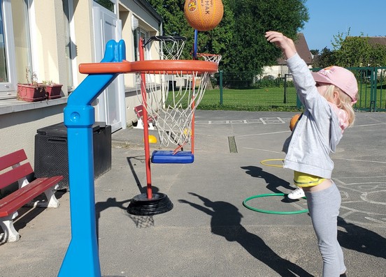 Les TPS/PS découvrent le basket avec les entraîneurs de l'AJSO,club de basket de Ouistreham.Parcours,déplacements,jeux de poursuite,dribble ...les séances sont bien sportives !