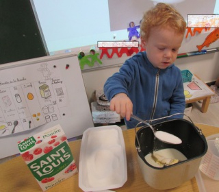 Nous avons également découvert la recette de la brioche : farine,lait,beurre,oeuf,sel,sucre et levure pour qu'elle "gonfle".