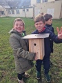 Vendredi nous avons fabriqué des nichoirs à l'école. Chistophe et Joël, membres de l'association GoElan ont appris aux enfants la différence entre mangeoire et nichoir et l'intérêt d'en installer dans nos parcs, écoles et jardins notamment avec la réduction des haies bocagères dans nos campagnes.