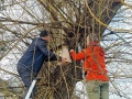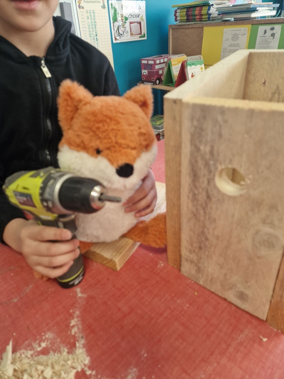 Ensuite les enfants ont à tour de rôle aidé à la conception d'un nichoir en bois, protégé par un toit en ardoise. Le choix du diamètre d'entrée a pour intérêt d'attirer nous l'espérons des mésanges bleues ou charbonnières.