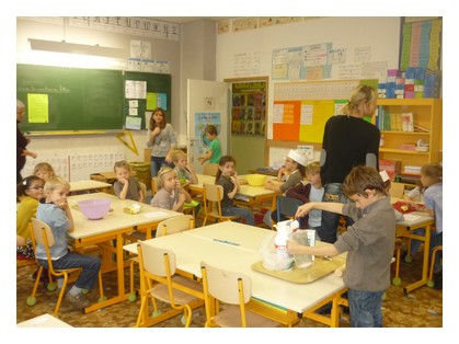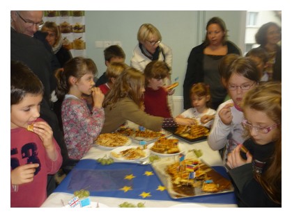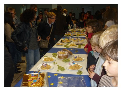 Allemagne,Italie,France,Espagne et Angleterre les enfants se sont répartis les tâches.Depuis ce matin , des mamans sont venues aider pour être prêts pour 16h00.Tout le monde a pu inviter sa famille pour la dégustation en cantine.Un livret de recettes a été remis à chaque enfant pour pouvoir refaire la préparation à la maison.Bravo à tous !