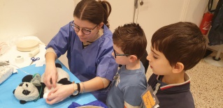 Les enfants de MS-GS se sont rendus à "l'hôpital des nounours" pour soigner leur doudou! Différents services étaient présents comme la radiologie, la pharmacie, la chirurgie, une ambulance etc...