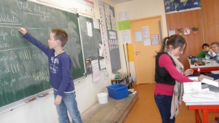 Aujourd'hui, en cm1/cm2, nous avons choisi nos délégués. Huit candidats se sont proposés avec leur programme.