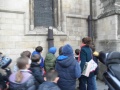 Nous avons organisé avec l'Office du Tourisme de Ouistreham un circuit de découverte de Ouistreham Autrefois. Nous avons choisi de partir de la place de l'église puis la Grange aux Dîmes ,passage par le Cabieu puis retour sur le quartier de la grève et la Grande rue. Avec des photos d'époque , Floriane l'animatrice a présenté aux enfants ce qu'étaient les plus anciens batiments:l'Eglise et la Grange aux Dîmes, puis la fonction de phare de noter clocher.Nous nous sommes ensuite intéressés aux métiers de Ouistreham avec le quartier des pêcheurs et la grande rue commerçante.Les enfants ont pu rechercher des traces sur le mur de l'Eglise et comparer des photos avant et maintenant. Ils sont à présent incollables sur leur ville.Cette animation a été proposée aux classes de GS ,GS/CCP,CP/CE1,CE1/CE2,CM1,CM1/CM2.