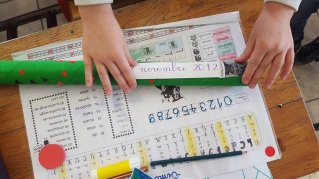 Les GS/CP ont d'abord décoré un rouleau de carton sur lequel ils ont collé leur date de naissance. Puis chacun devait se placer dans l'ordre des années, des saisons, des mois, et enfin dans l'ordre des dates de naissance. Autrement dit, de l'élève le plus âgé à l'élève le plus jeune.